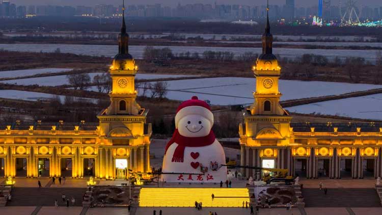 这是12月15日在哈尔滨市群力音乐公园拍摄的大雪人(无人机照片)。12月15日,哈尔滨市群力音乐公园大雪人完成主体建设,进入到最后的细节打磨阶段。12月15日,哈尔滨市群力音乐公园大雪人完成主体建设,进入到最后的细节打磨阶段。