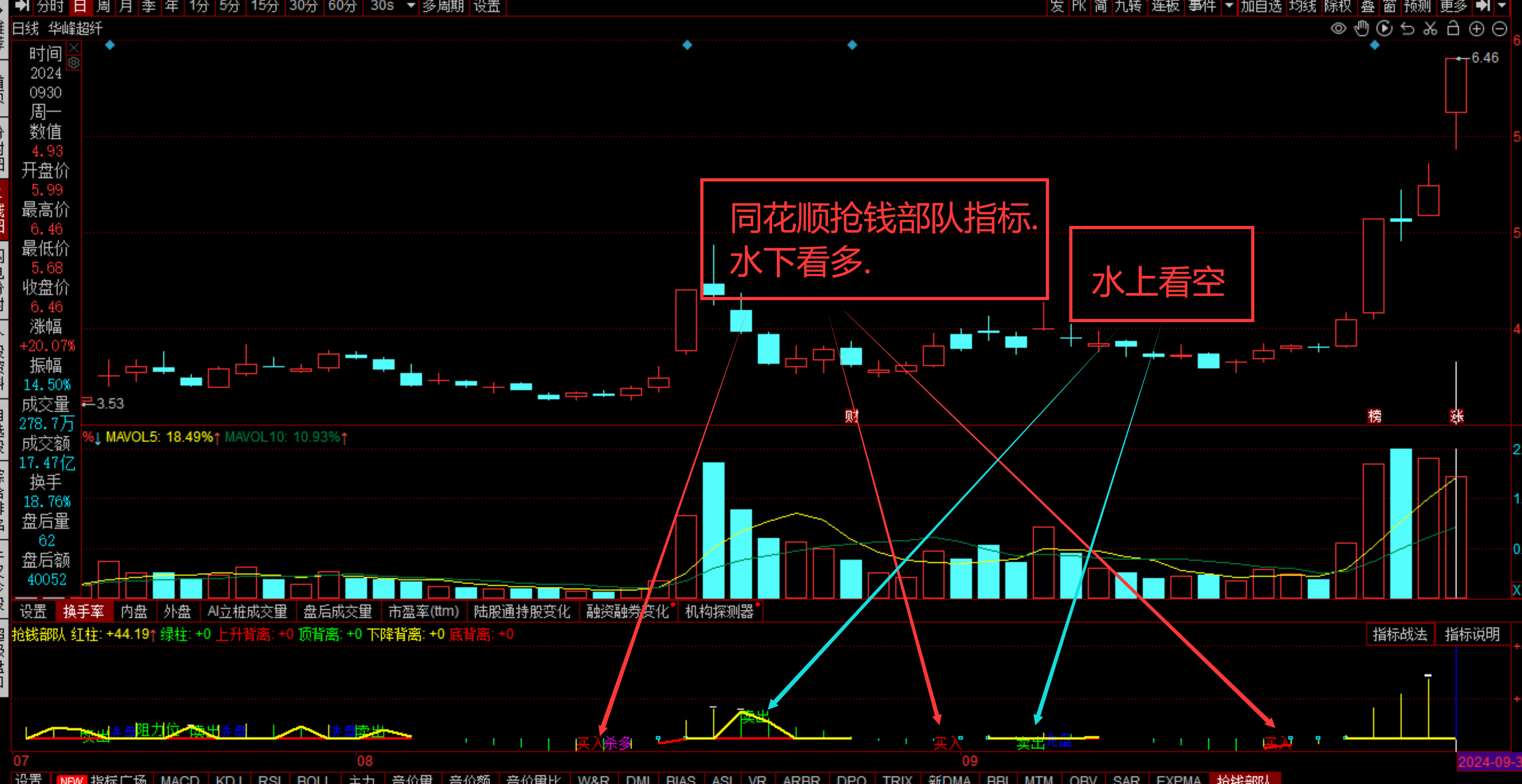 解读:留活口是让接盘者看到希望,心存幻想,岂不知大资金已经金蝉脱壳,这是大资金撤退时经常玩的一种心理战术。