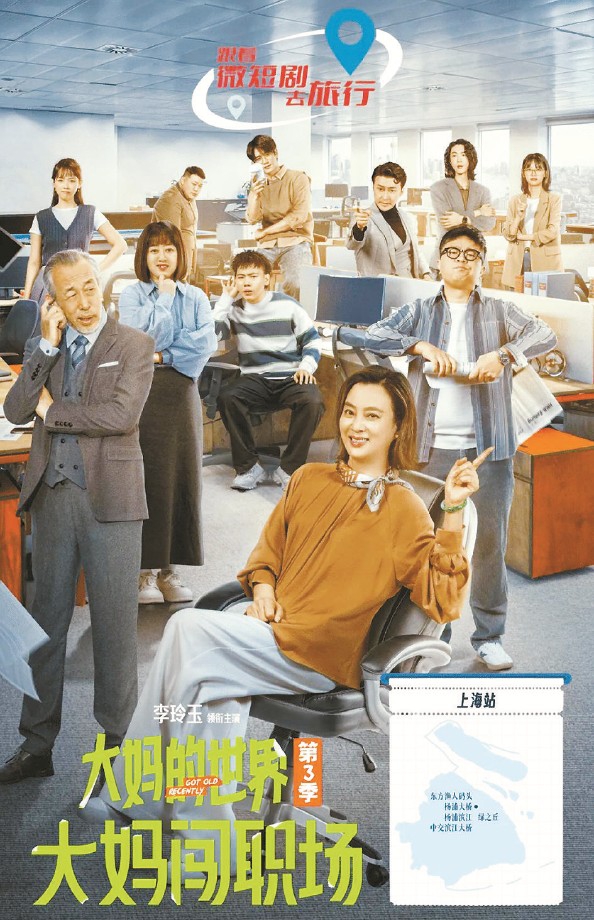 无论长剧还是短剧,好故事才是硬道理,而上海的故事总是特别受欢迎。今年,上海推出了爆款短剧《大妈的世界3:大妈闯职场》。这部剧跳出传统套路,以退休大妈重回职场为视角,调侃形式主义、职场小团体等热门话题。剧中既有大妈刚入职就获董事长青睐的爽感剧情,也有护短领导这样立体鲜活的角色,李玲玉携手脱口秀演员、抖音达人的混搭阵容,更让笑点密集又接地气。上海粒粒橙传媒宣传负责人李萌介绍道,剧组实景拍摄,办公室讨论、深夜路边摊宵夜等场景真实鲜活,播出后收获2.5亿+话题曝光,网友直呼“搞笑又有道理,越看越上头”。