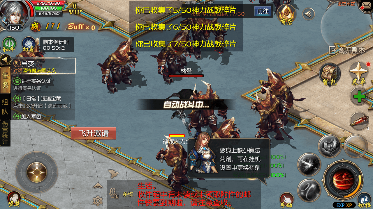 完成“成神之路”任务的神选者可参加飞升成神任务,正式版魔域官方下载前往虚空神庭,邀请他人助你一同完成力量、敏捷、体能、智慧、心灵5大神殿考验——完成考验,进入光明神域,踏上神坛获封成神,获得神祇专享特权!