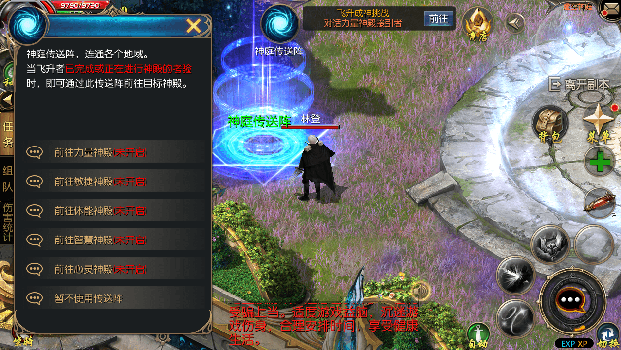 神庭传送阵连接各座神殿,若飞升者或协助者在考验途中死亡,可通过它快速前往各座神殿!