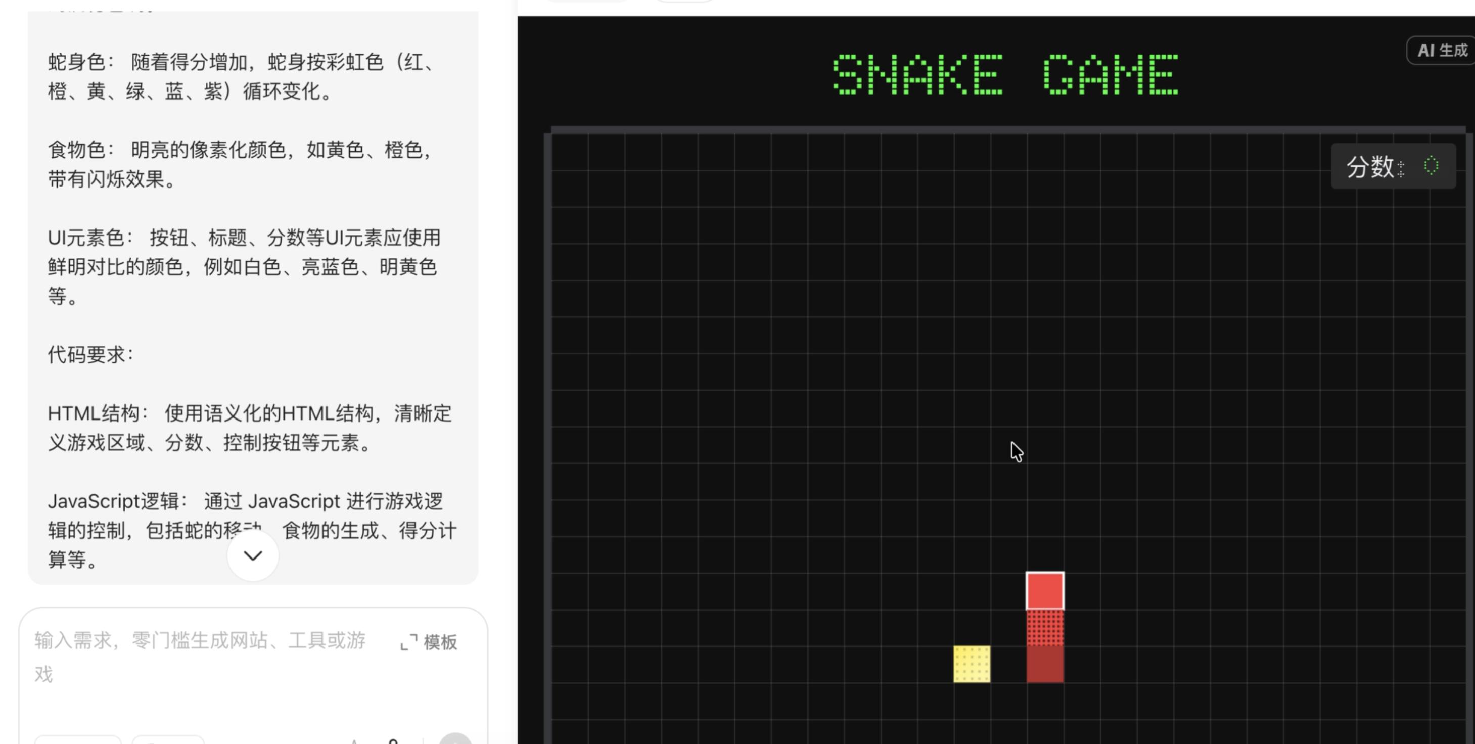 应用生成仔细看豆包pc的首页,你会发现在云盘的上面,有一个应用生成的模块,目前号称是通过自然语言即可生成应用,从创作广场中已经做好的应用来看,效果确实很不错,甚至我在体验的时候还没忍住多玩了几把贪吃蛇。
