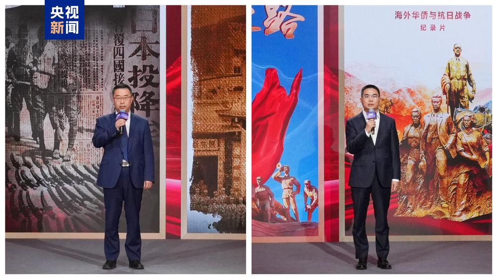 △中国人民抗日战争纪念馆馆长罗存康、国务院台湾事务办公室新闻局局长陈斌华推介相关节目