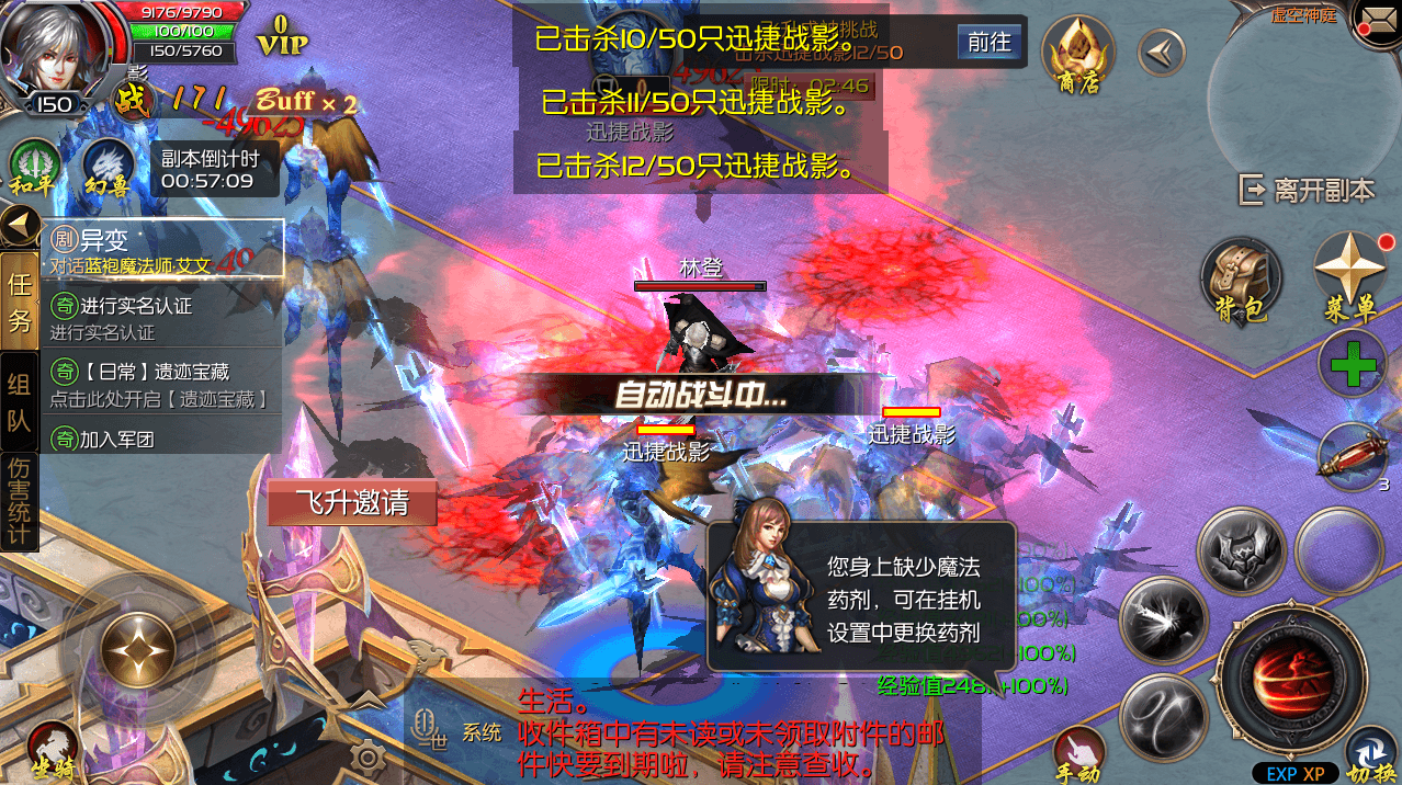 1、在3分钟内击杀50只迅捷战影,获得进入敏捷神台的资格,若未能在3分钟内击杀50只迅捷战影,则需向敏捷神殿接引者申请重新开启该考验,或点击飞升信息栏的“重新挑战”按钮重启该考验。