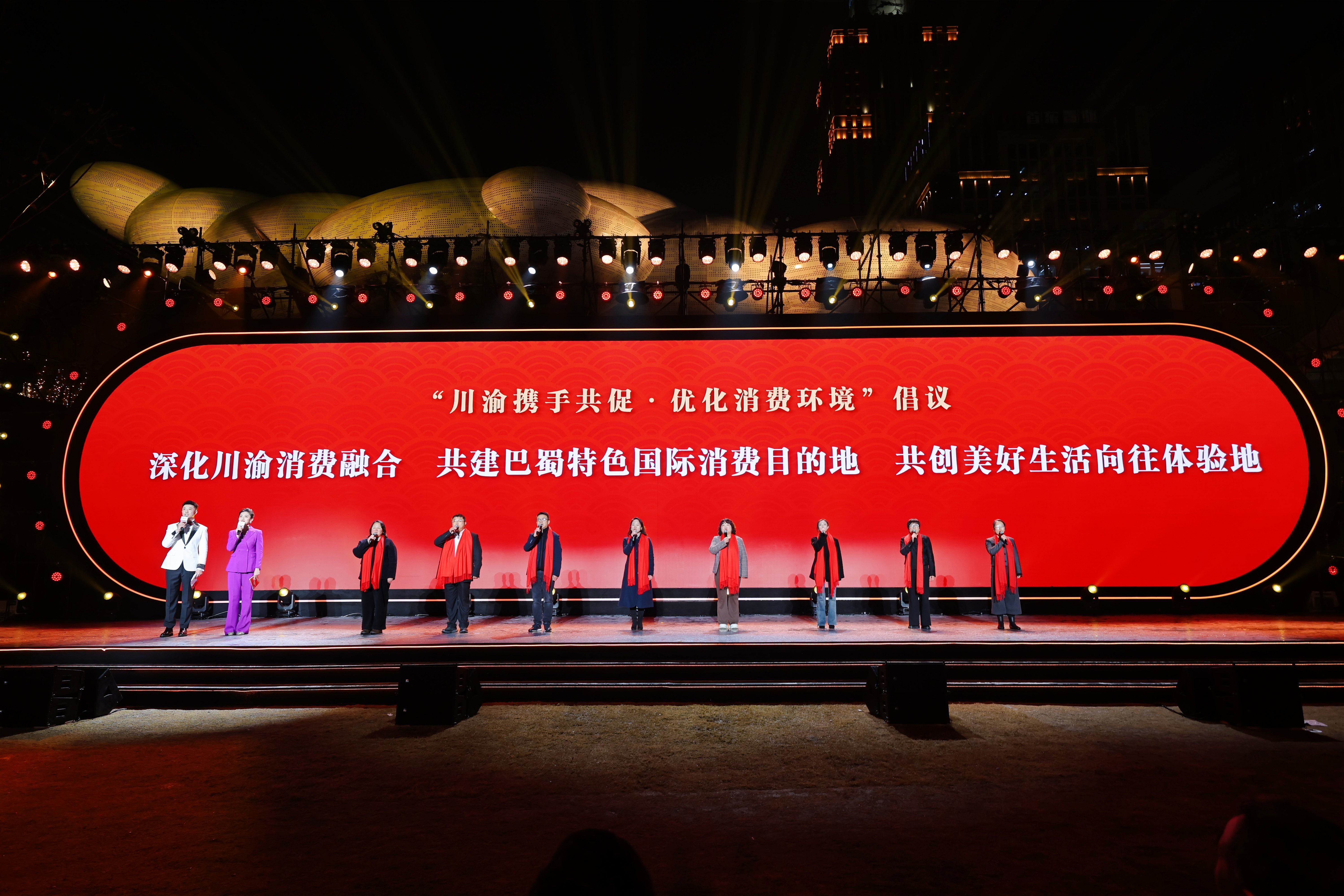 启动活动现场,川渝两地商圈、商协会和市场主体代表共同发起了“川渝携手共促·优化消费环境”倡议,更大力度开展“川渝好物”联合推广,川渝票根互认互通,共同推动川渝消费市场深度融合、联动发展等,加快打造富有巴蜀特色的国际消费目的地和美好生活体验地。