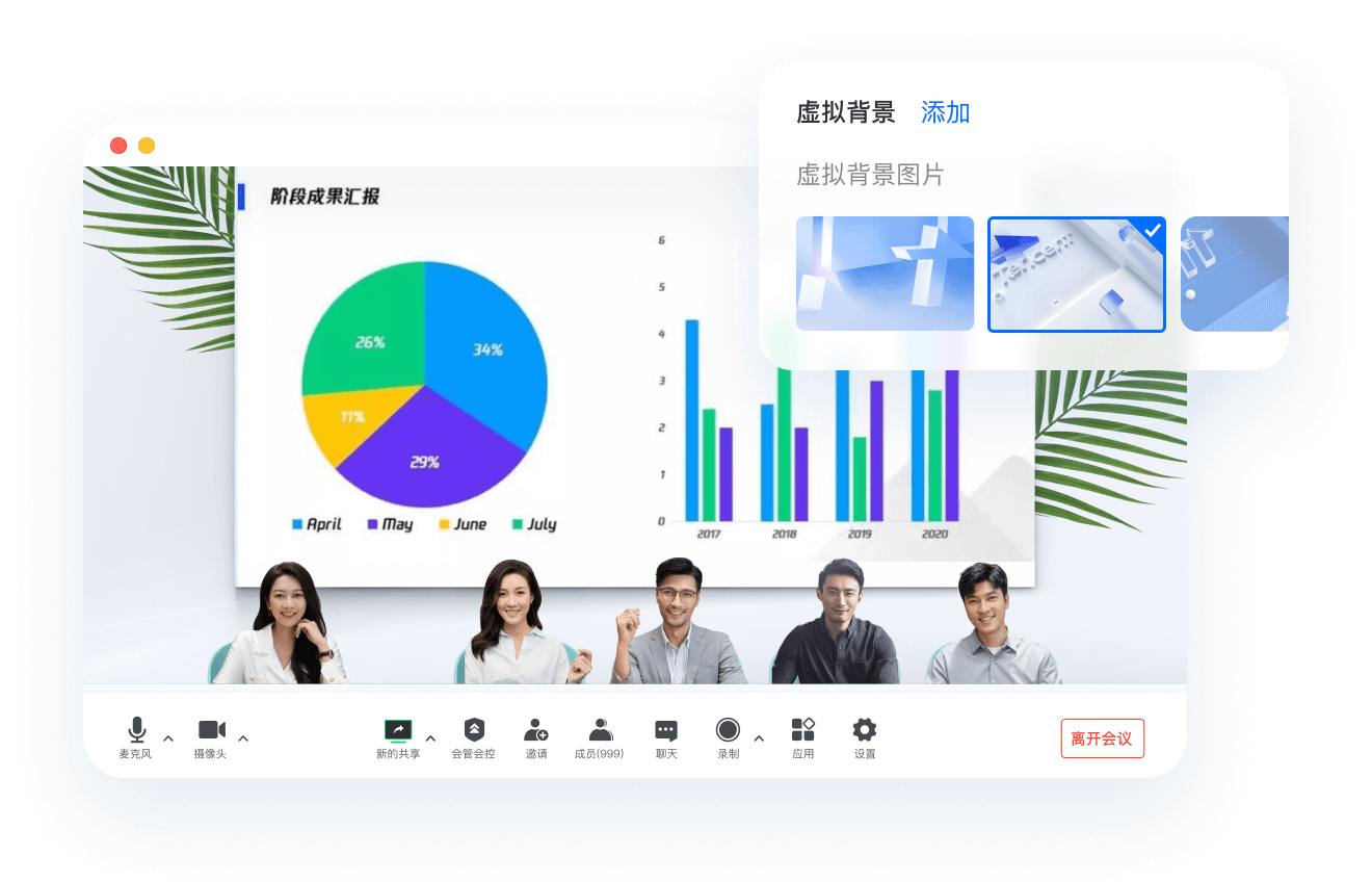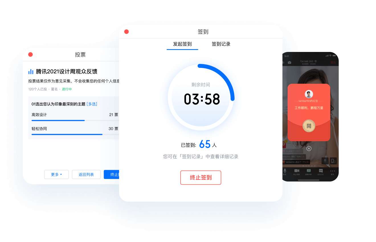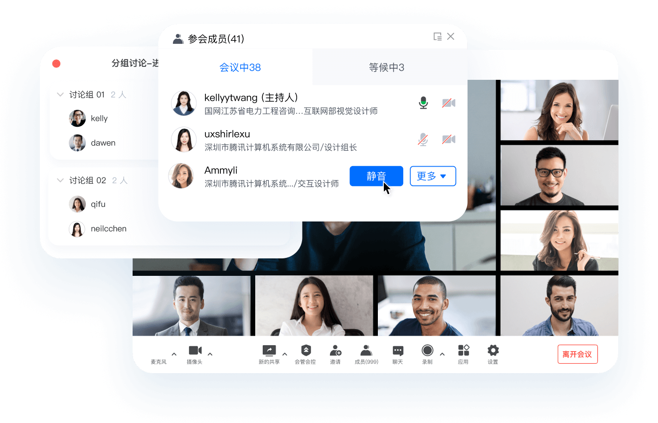 提供独立等候室,确保核心问题核心人员讨论;会中提供指定闭麦功能,会议期间不再聒噪