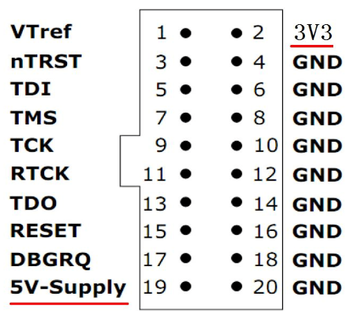 这是做jlink头这边的接口,根据jlink图很容易知道需要4、7、9、15线,用杜邦线解出来就好了。一般是红色的为1脚,往后数就行了。没法确定的话,自己用万用表测量一下。 接下来需要从硬件上将GND(地线)、TMS(数据线)、TCK(时钟线)、NSRST(重启线)接出来对上就好了。