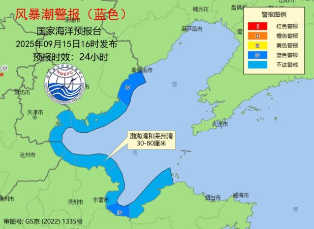 预计9月16日至17日,渤海湾和莱州湾将出现一次温带风暴潮过程;