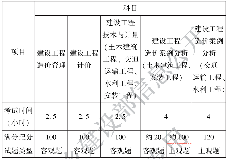 《建设工程造价案例分析》科目为主观题(土木建筑工程、安装工程两专业为主客观混合题,交通运输工程、水利工程两专业为主观题),答题前必须仔细阅读应试人员注意事项(试卷封二)和作答须知(专用答题卡首页),答题时使用规定的作答工具在专用答题卡划定的区域内作答,须在答题卡全部页面规定位置填写考生信息;其余三科为客观题,在答题卡上作答。应试人员在答题卡上作答时,须规范填涂,以免影响考试成绩。