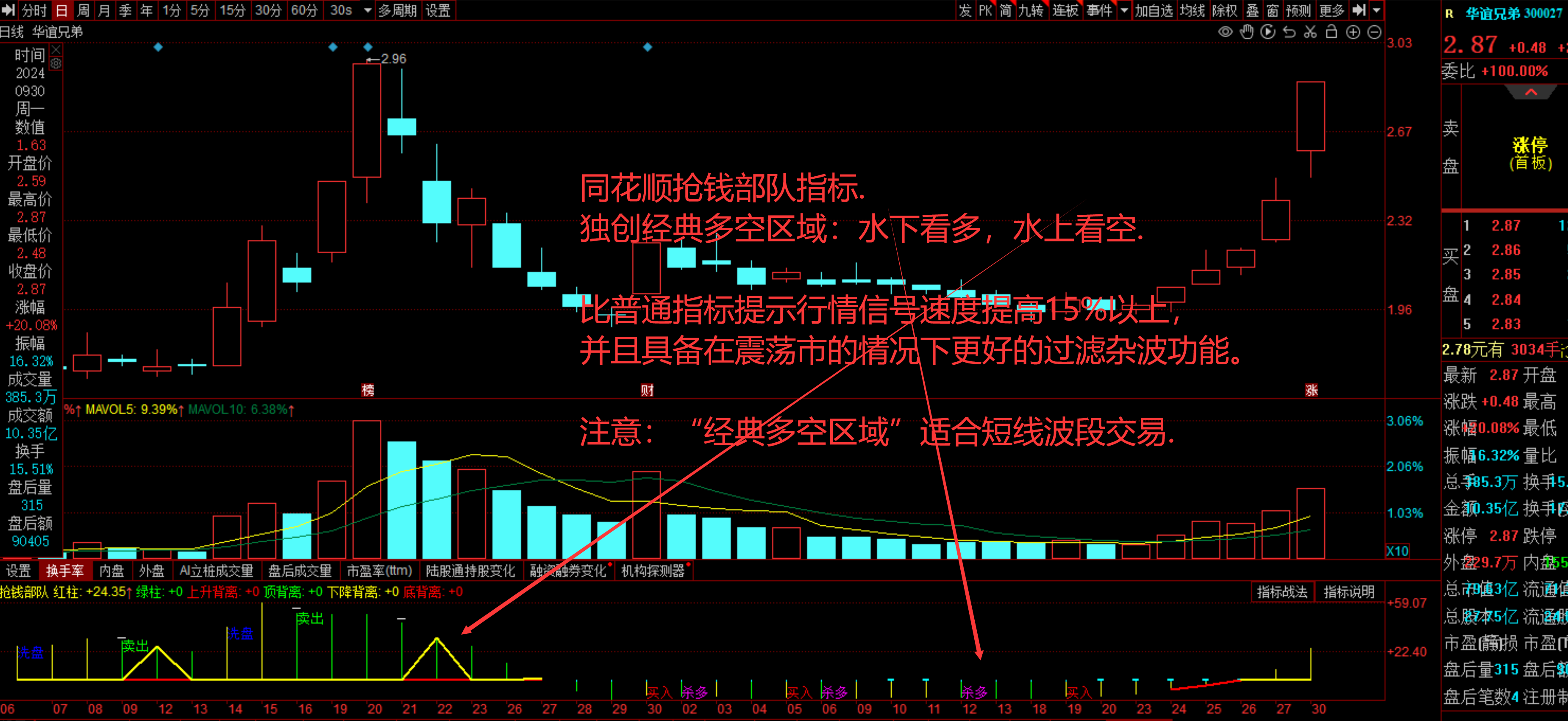 比普通指标提示行情信号速度提高15%以上,并且具备在震荡市的情况下更好的过滤杂波功能。