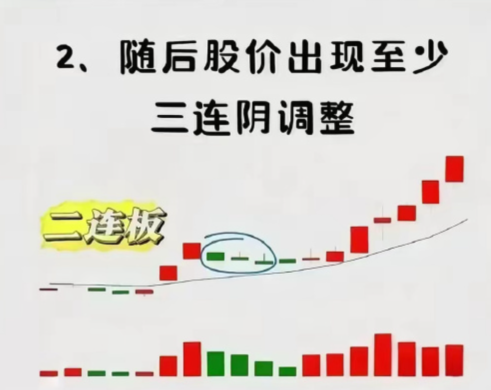 2.随后股价必须出现至少三天连续回调下行的阴线走势,回调时间不能太长,尽量在一周内才比较有效。
