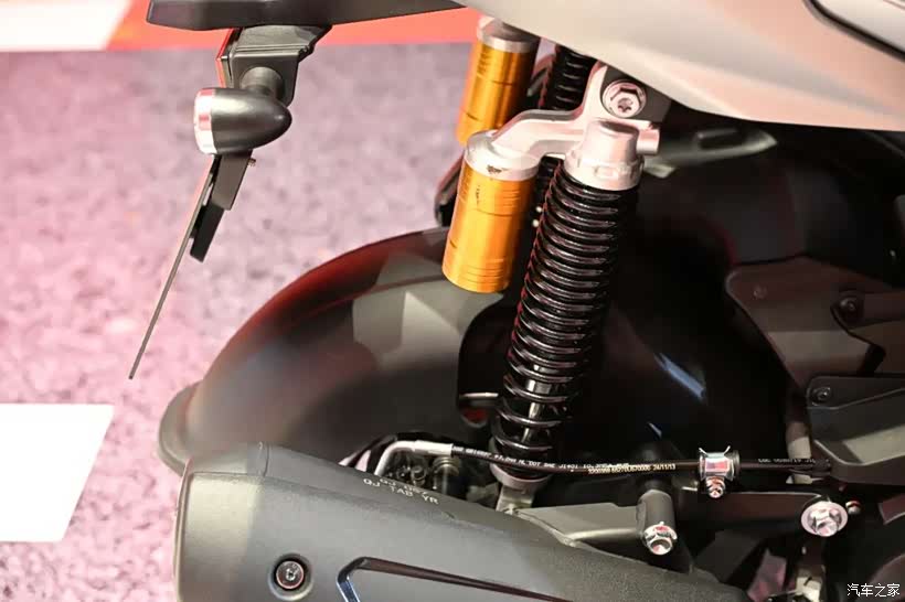 由于采用了踏板车的发动机结构,油箱下的空间自然也不能浪费,所以钱江设计师给这块空间改成了一个16.5升的大储物格。在日常骑行时放放奶茶、手套、雨衣,女生放放化妆袋、包包等都是完全没有问题的,这似乎也打破了跨骑没法储物的刻板印象。此外,从现场的实车可以发现小飞侠后座两侧还预留了边包的安装孔位,对于后续改装留有一定空间。