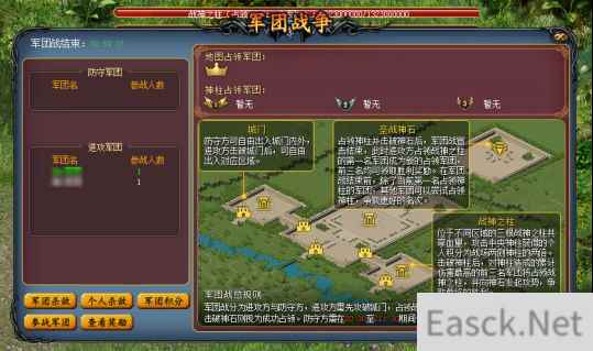 在进攻方军团的猛烈攻势下,城门变得残破,唯有对城门进行修复,才能御敌于外。城门与战神之柱将会消耗占领军团的军团资金进行修复。诸位可在城门或战神之柱处补充军团资金。(战神之柱被进攻方占领时,修复将消耗第一名占领军团的军团资金)