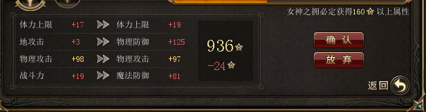 虽然会多费点圣力值但是属性不会掉了,当然要想少花圣力多刷高属性那就努力升女神的圣阶吧,因为圣阶越高刷出好属性的几率就越大,女神的四个随机天赋单个的满分是200,女神一阶时是必定获得0以上的属性,以后每升一阶就加20,等女神十阶的时候就必定获得180评分以上的属性了,也就是说女神十阶的时候刷出来的属性都是在180到200评分之间(包括180评分和200评分)。